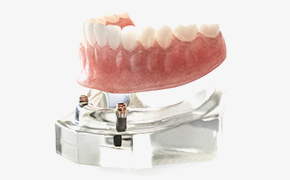 顎の骨に埋入したインプラントを支えにして入れ歯を固定する治療法です。外れにくく安定性が高いため、ずれや浮き上がりが起こりにくく、しっかり噛めるのが特徴です。入れ歯の不安定さや違和感でお悩みのかたに適しています。