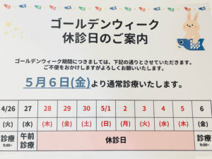 ゴールデンウィーク休診日のお知らせです。