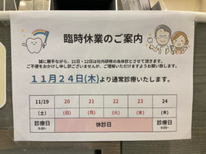 11月23日(水)までお休みいただきます🙇🏻♂️