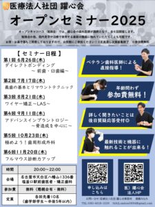おばた歯科・矯正歯科の所属する《医療法人社団 躍心会》では、将来を見据えた若手歯科医師・歯学部学生の皆さんを対象に【オープンセミナー2025】を開催します!
