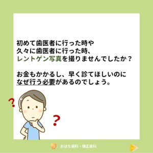 みなさん歯医者に行くと、「レントゲン撮りますねっ」と案内されたことありませんか?