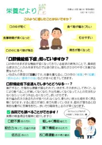 加齢により、「噛む」「飲み込む」「話す」「唾液を出す」などの機能が徐々に低下する状態を「口腔機能低下症」といいます。