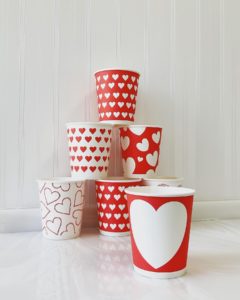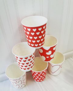 うがい用紙コップがバレンタイン仕様の