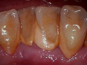 唾液の中や飲食物の中にはカルシウムやリンが存在しており、それが汚れと合体すると歯の表面に石が付着してきます。これが歯石です。